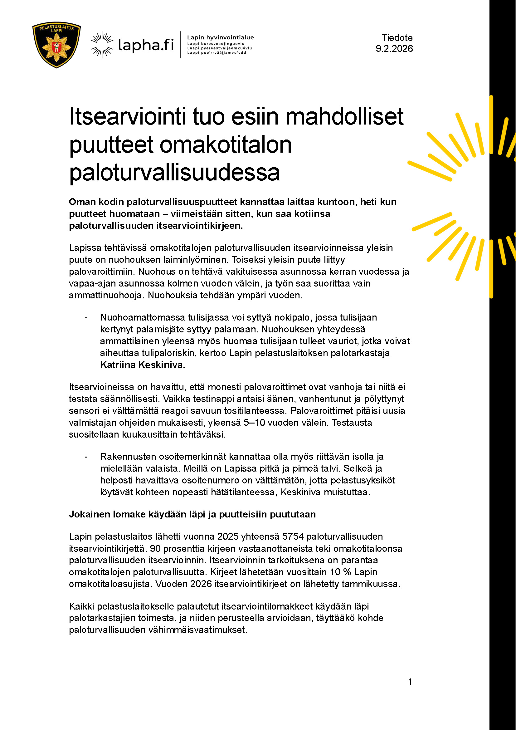 Itsearviointi tuo esiin mahdolliset puutteet omakotitalon paloturvallisuudessa